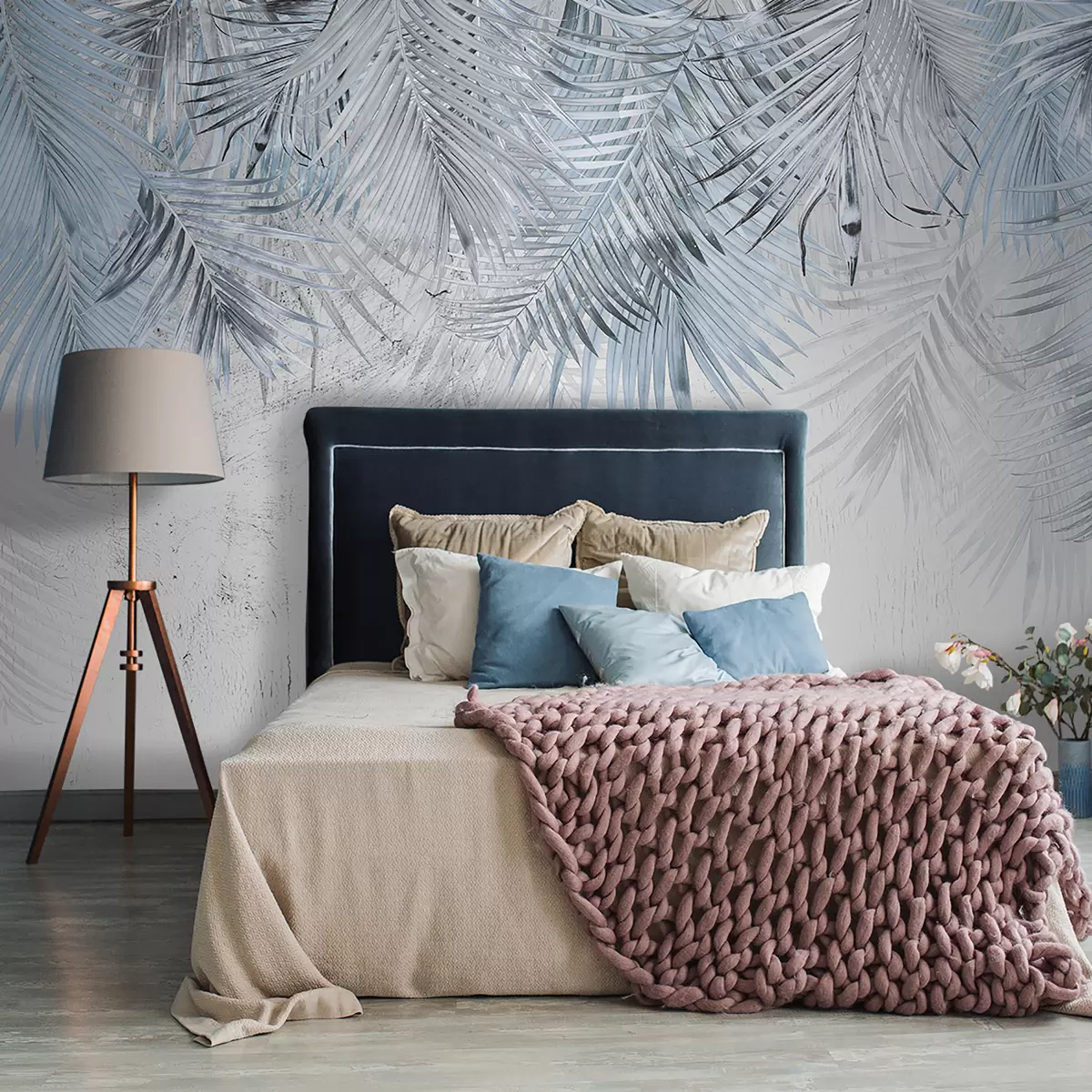 Papel de pared Hojas tropicales azules en estilo grunge Nr. u93843v3