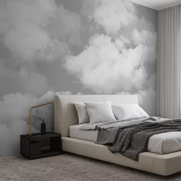 Papel de pared Las nubes blancas sobre un cielo gris son una nueva tendencia en el interior. Nr. u94178