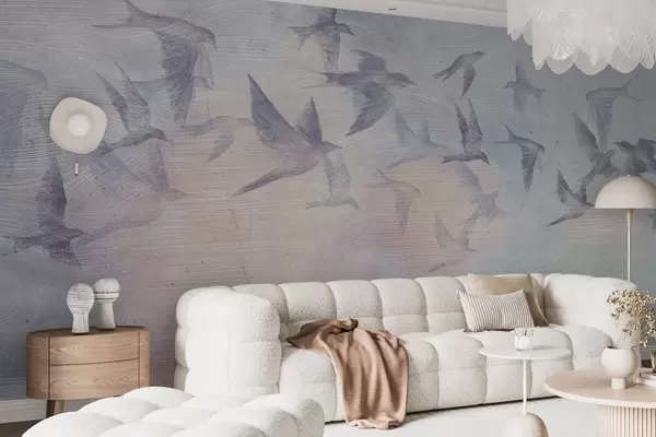 Papel de pared Bandadas de pájaros en tonos suaves Nr. w00702