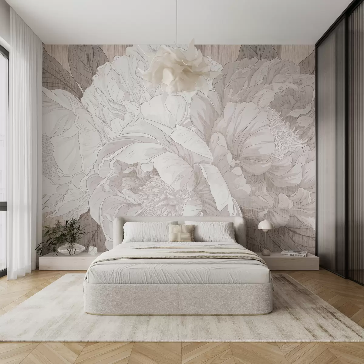 Papel de pared Grandes flores de peonía texturizadas en tonos beige Nr. w01141