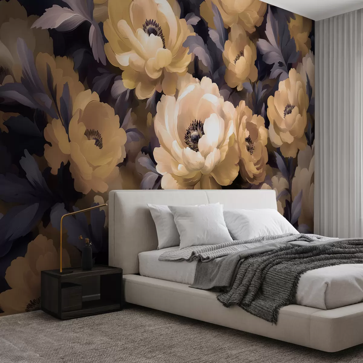Papel de pared Pintura al óleo de estilo floral basada en el color beige y morado Nr. w01581