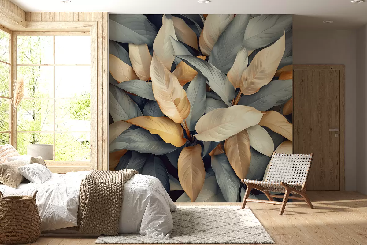 Papel de pared Plantas tropicales en colores rosa y beige Nr. w01586v1
