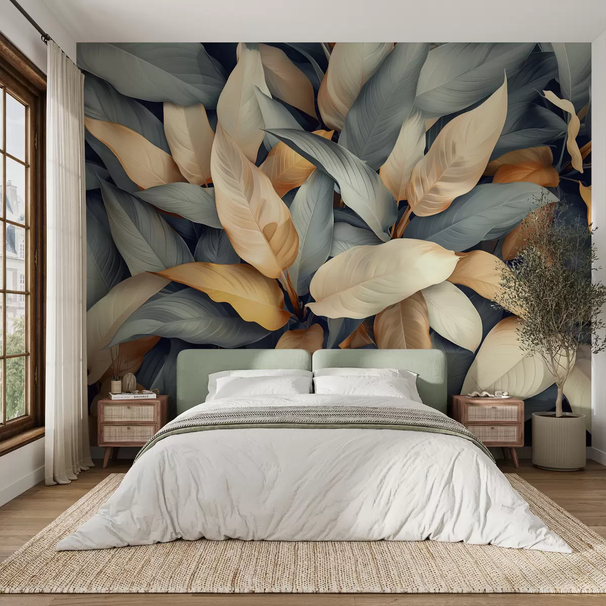 Papel de pared Plantas tropicales en colores rosa y beige Nr. w01586v1
