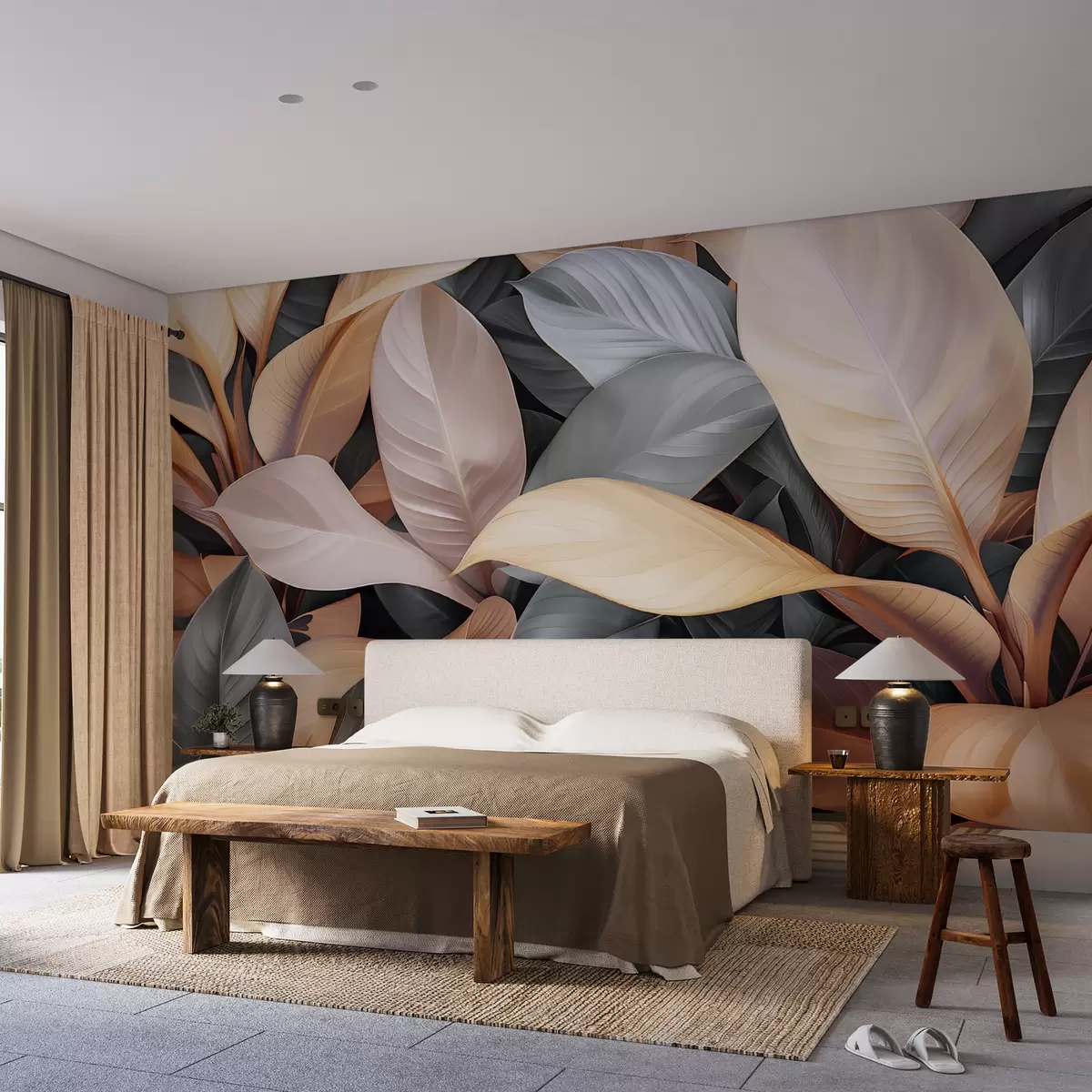 Papel de pared Grandes hojas tropicales en colores azul y beige Nr. w01587v2