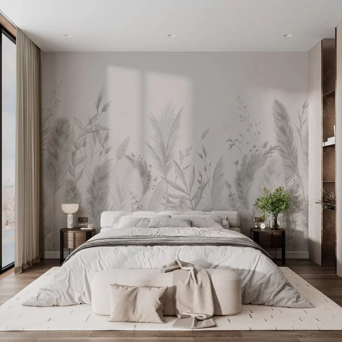 Papel de pared Hierbas altas y flores de colores neutros Nr. w02004