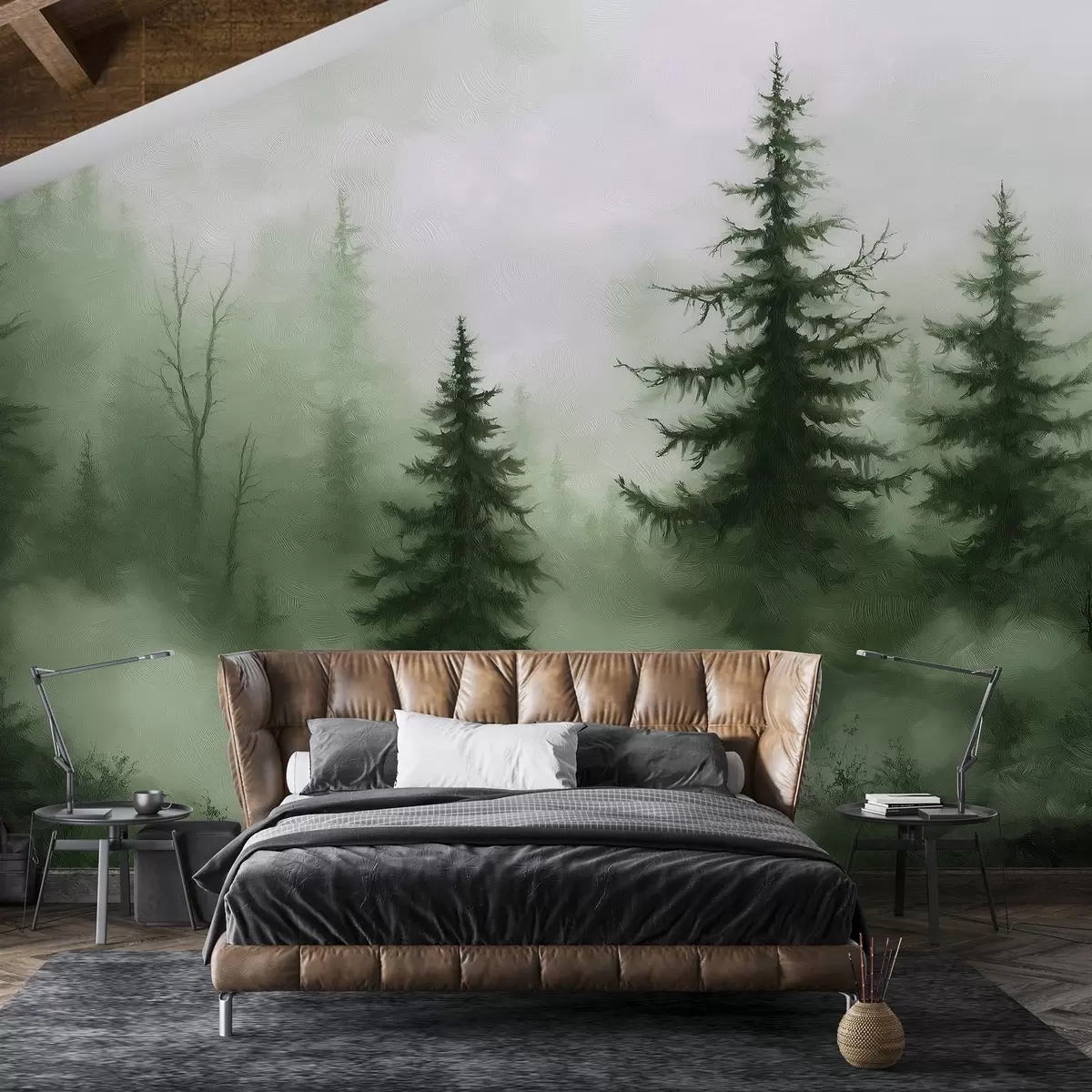 Papel de pared Bosque verde oscuro, pintura al óleo, pinceladas, naturaleza Nr. w02153v1