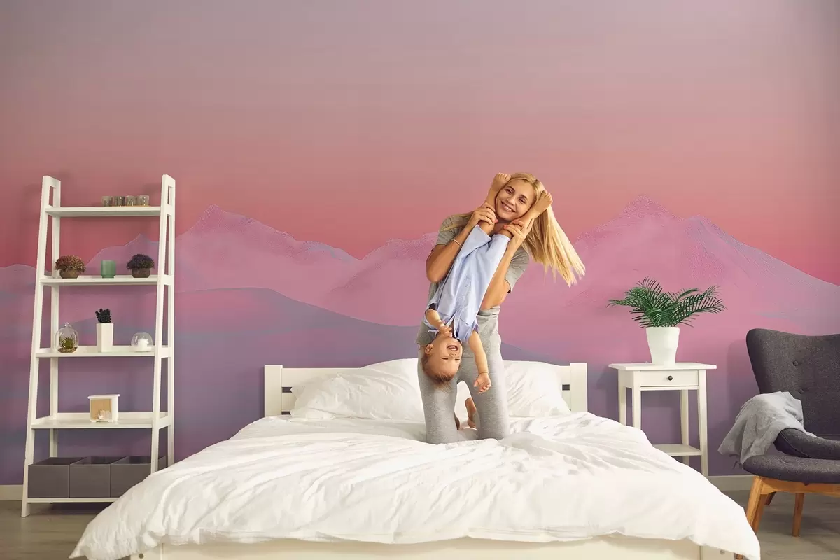 Papel de pared Suave puesta de sol frambuesa con las montañas y el cielo como telón de fondo Nr. w02234