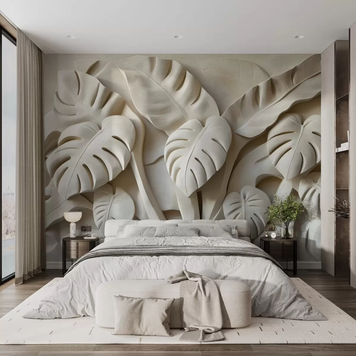 murales Bajorrelieve de grandes hojas de monstera w02312