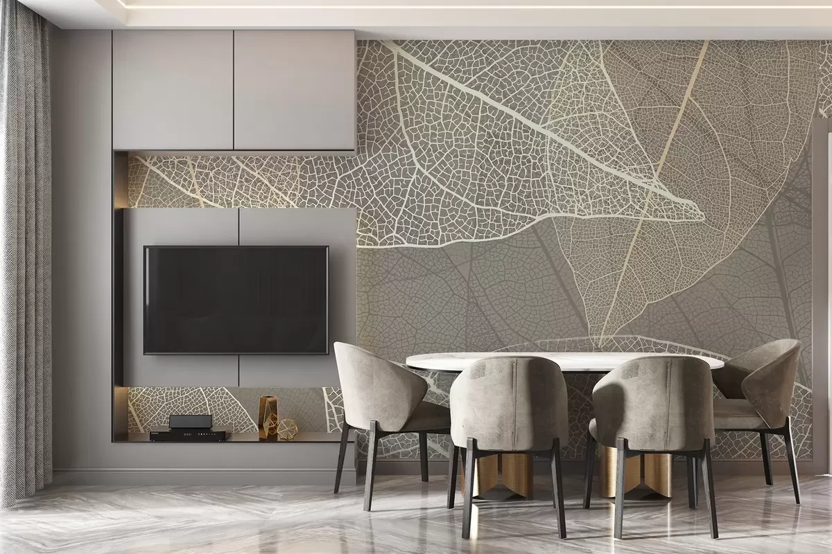 Papel de pared primer plano de hojas con venas en tonos grises cálidos Nr. w02520v2