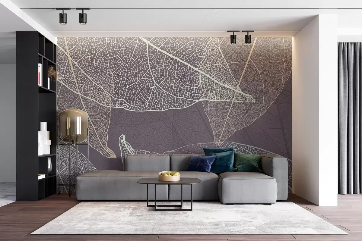 Papel de pared primer plano de hojas con venas en tonos gris púrpura Nr. w02520v3