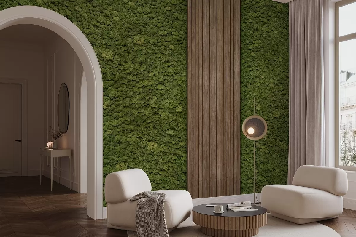 Papel de pared Pared estilo musgo con panel de madera, exuberantes colores oliva Nr. w02656v3