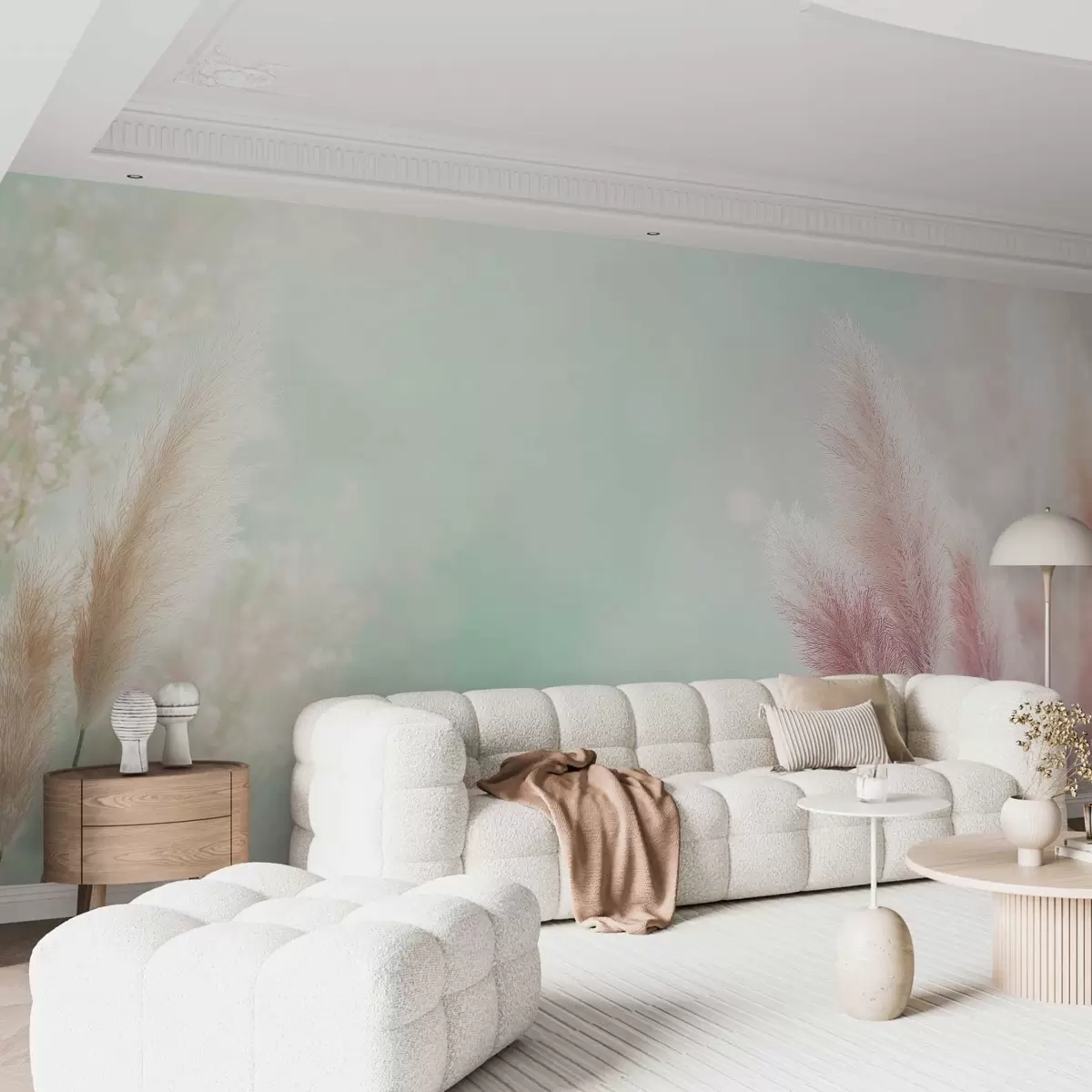 Papel de pared hierba de la pampa sobre un delicado fondo turquesa Nr. w02766