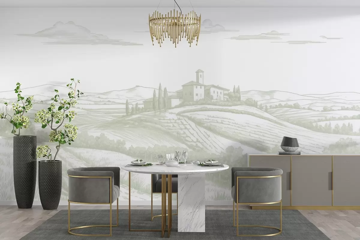 Papel de pared Paisajes de la Toscana, Italia, viñedos, naturaleza, castillo antiguo, colores verdes Nr. w03349v2