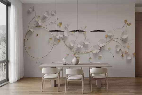 Papel de pared Rama volumétrica con flores y hojas Nr. w03653