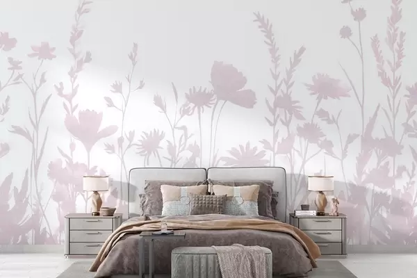 murales Pradera de verano, rústico, flores, paleta de color rosa w03670v2