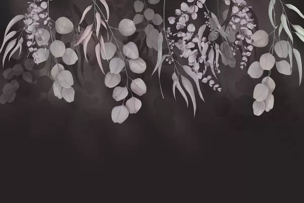 Papel de pared Hojas tropicales sobre fondo azul oscuro, floral Nr. w03752v2