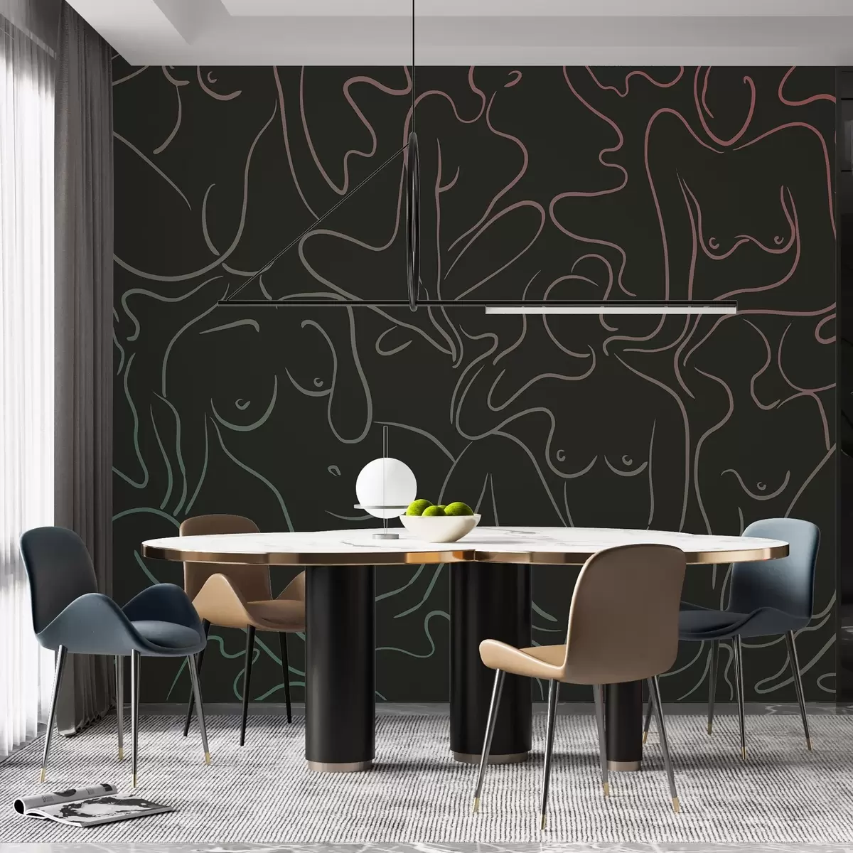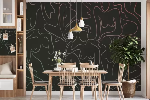Papel de pared Dibujo lineal siluetas anatómicas, abstracción, fondo oscuro Nr. w03755v2
