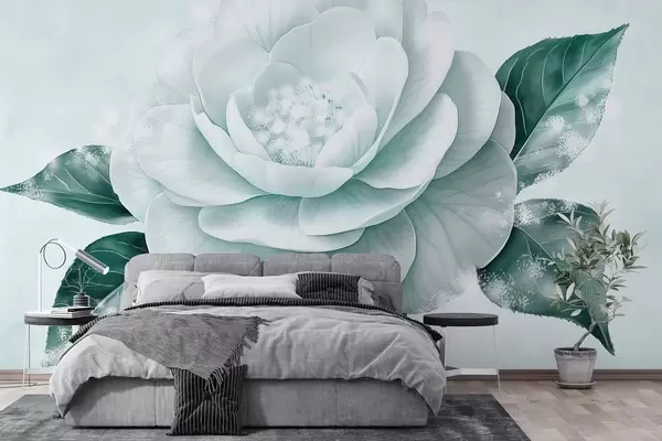 Papel de pared Preciosa flor de peonía en tonos azules Nr. w03757v1