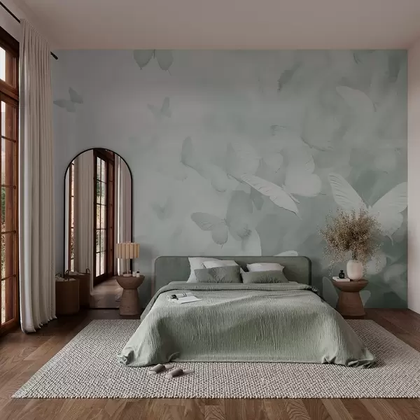 Papel de pared Mariposas, tonos verdes Nr. w03841v2