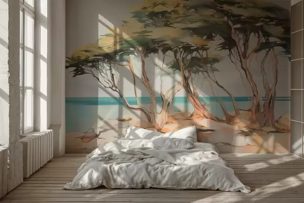Se puede limpiar suavemente con una esponja suave. Los murales de pared con recubrimiento de barniz pueden limpiarse con agua.