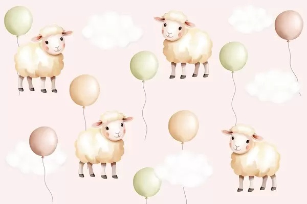 Papel de pared Simpáticas ovejas y globos Nr. w03860