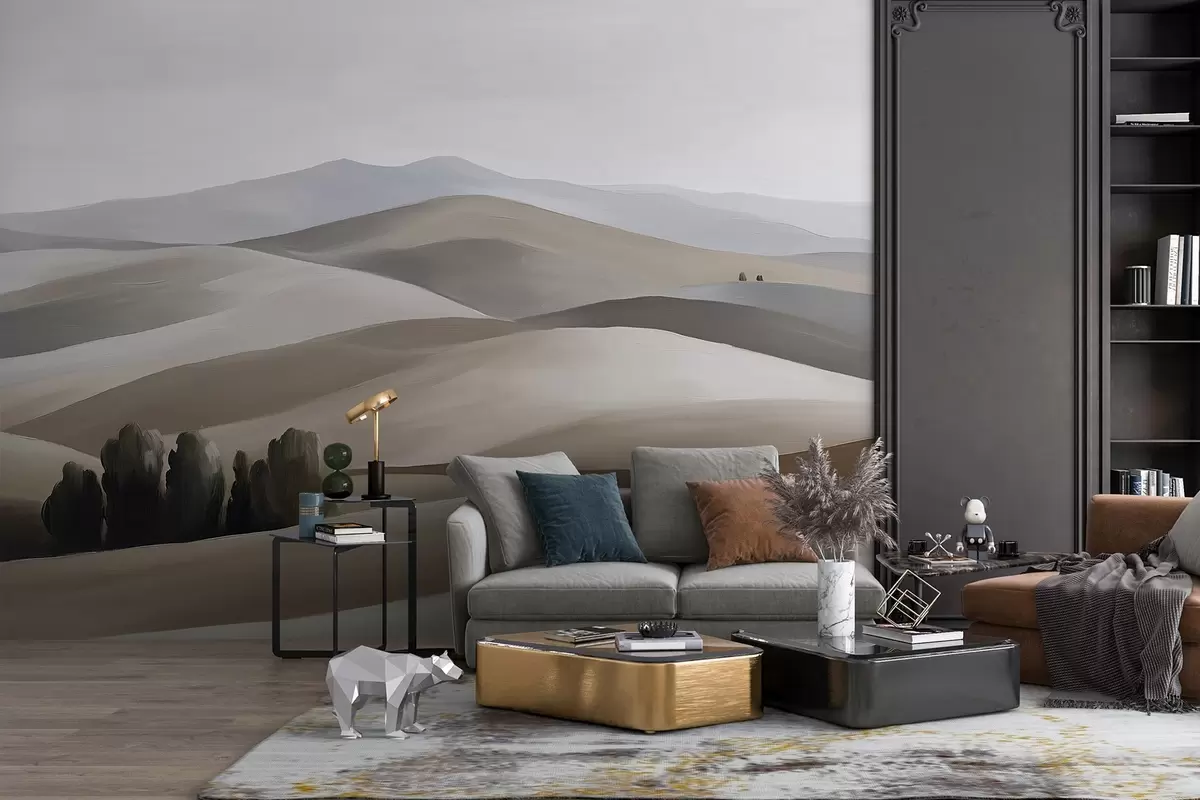 Papel de pared Paisajes con árboles, Toscana, colores beige y gris, estilo óleo Nr. w03880v1