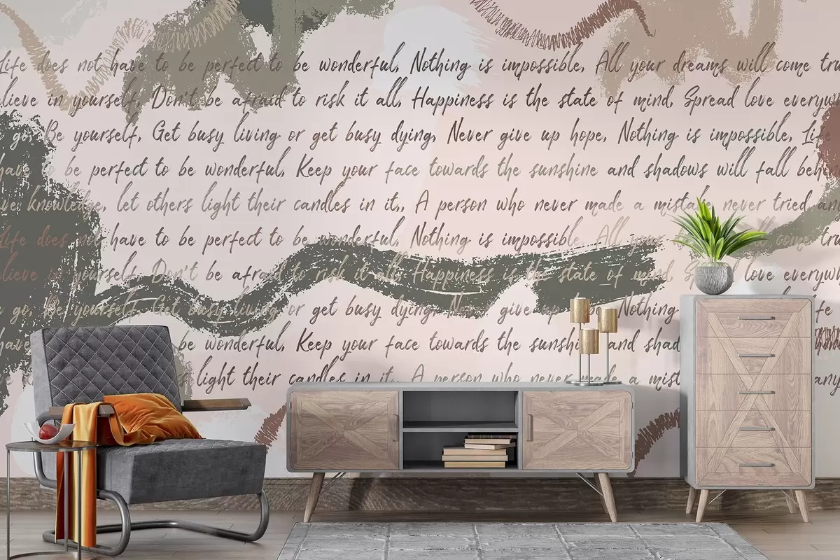 Papel de pared Diseño con citas inspiradoras, abstracción, colores naturales Nr. w03909