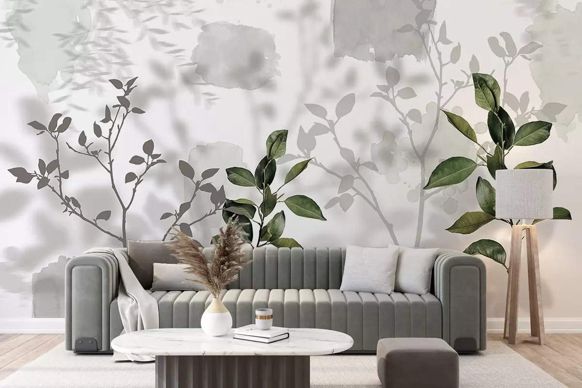 Papel de pared Hojas de limonero, ramas de arbol sombras, naturaleza, acuarela, verde Nr. w03910v1