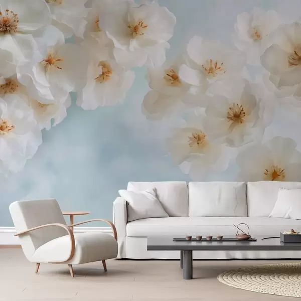 Papel de pared Delicadas flores grandes sobre fondo azul claro Nr. w03931v1