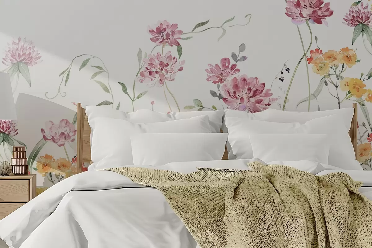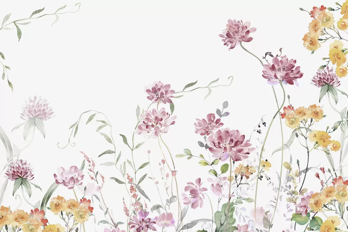 Papel de pared Delicadas flores silvestres imitación acuarela Nr. w03957