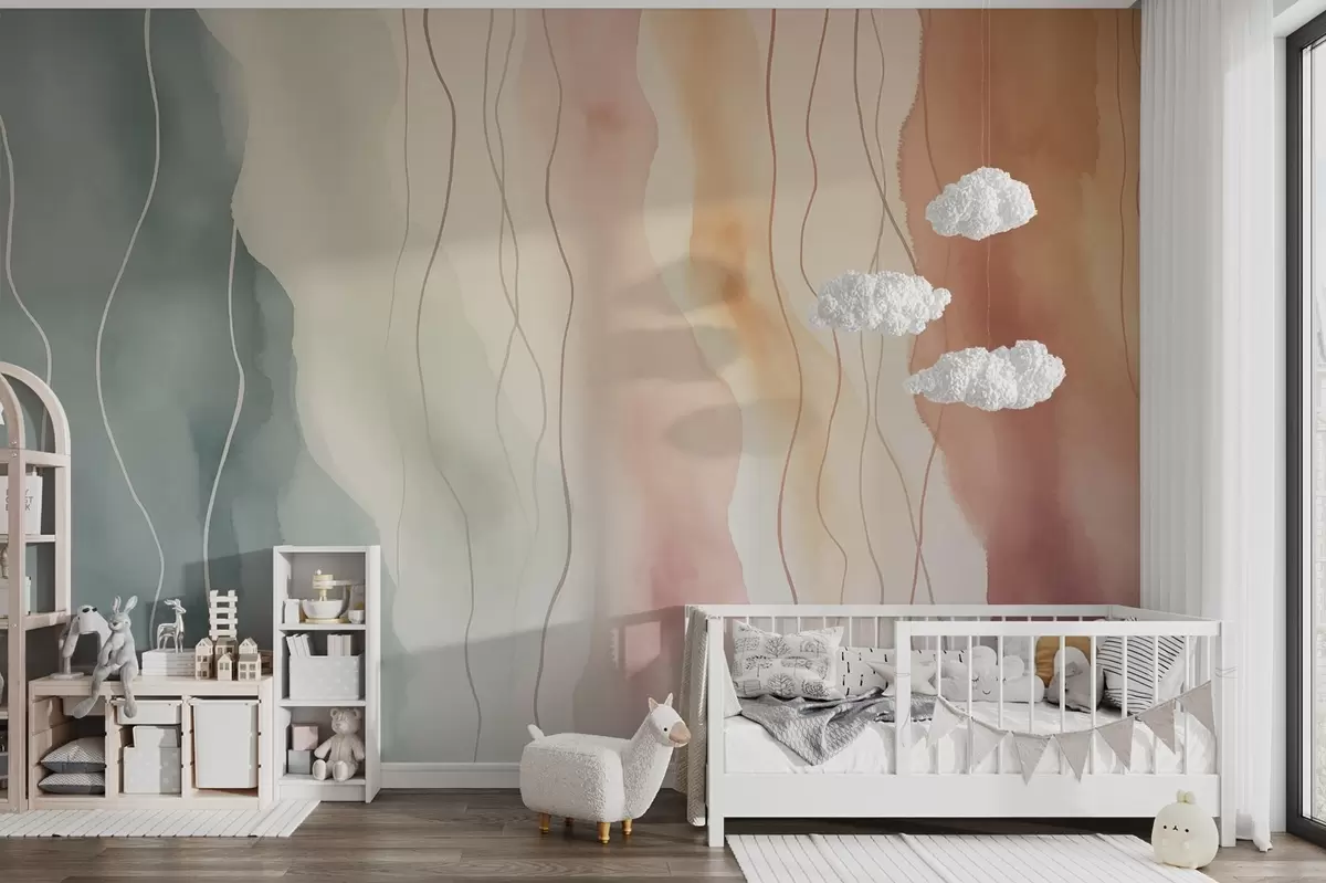 Papel de pared Ondas abstractas de acuarela en colores cálidos y fríos Nr. w03989