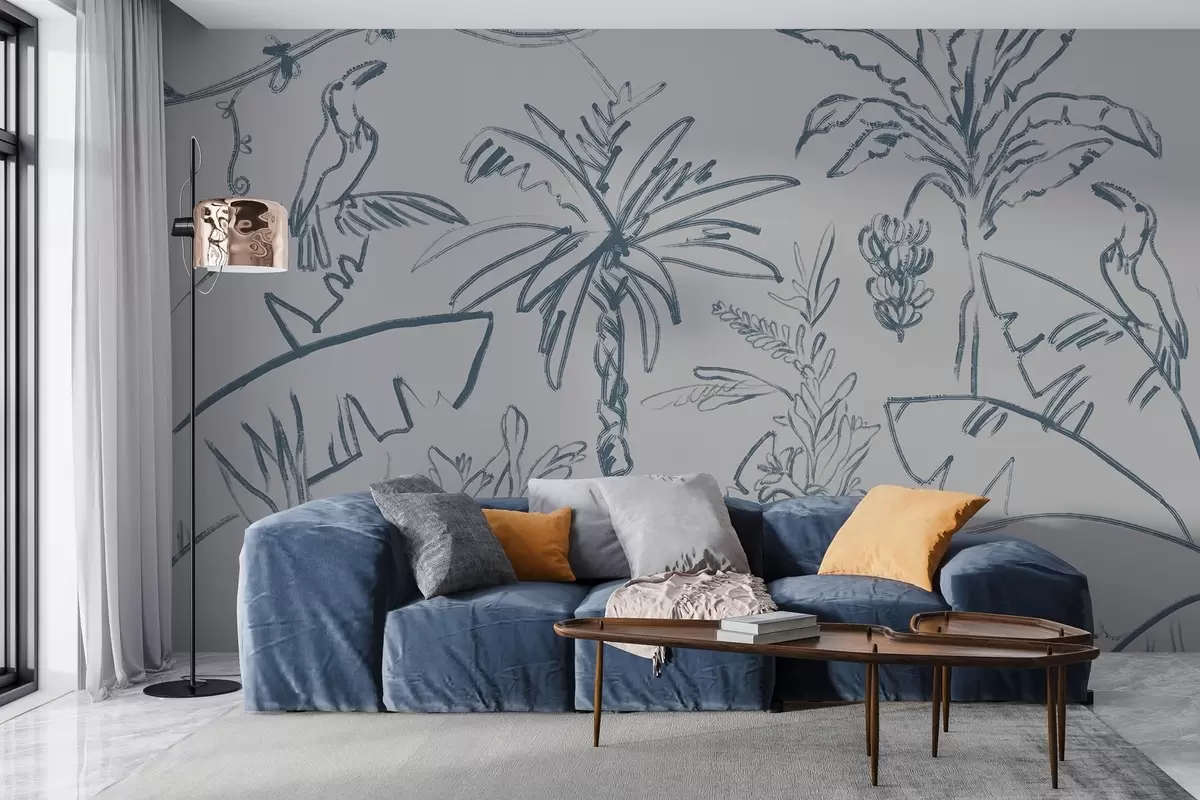 Papel de pared Motivo tropical en azul, plátanos, palmeras Nr. w04020v1