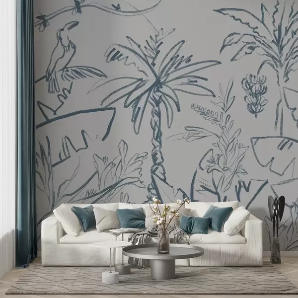 Papel de pared Motivo tropical en azul, plátanos, palmeras Nr. w04020v1