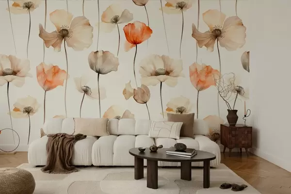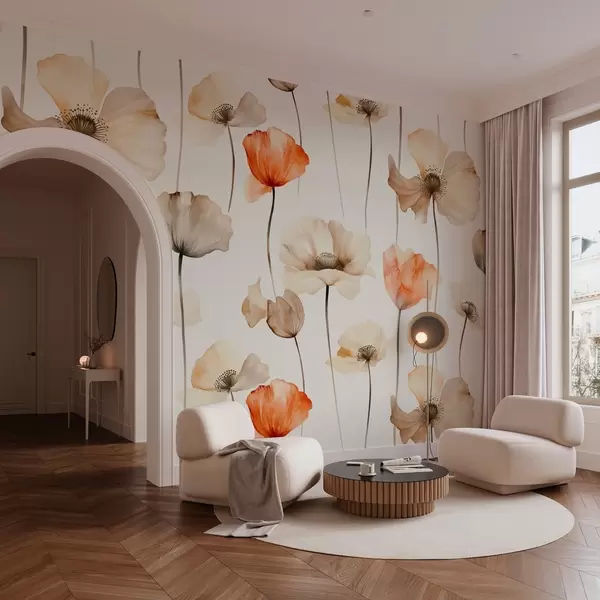 Papel de pared amapolas rizadas en estilo acuarela Nr. w04031
