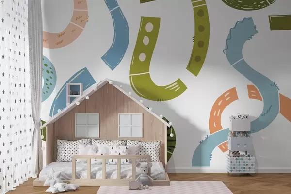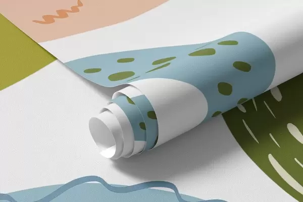 Papel de pared Dibujos abstractos, juveniles, garabatos, verde, azul, rosa Nr. w04066v2