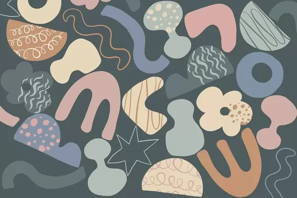 Papel de pared Figuras geométricas con garabatos dibujo, juvenil, fondo verde oscuro Nr. w04068v3