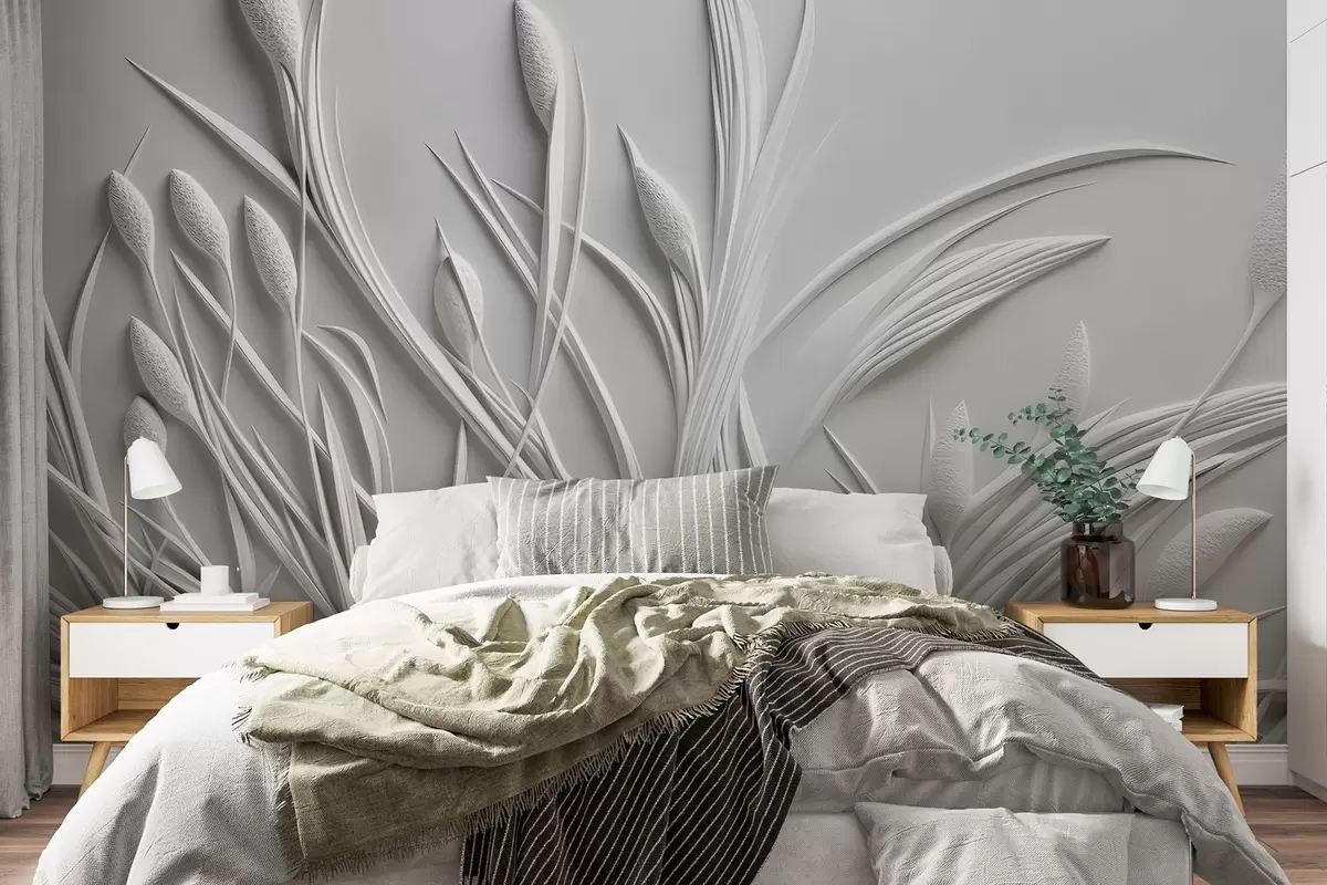 Papel de pared Bajorrelieve con delicadas hojas y pámpanos Nr. w04247