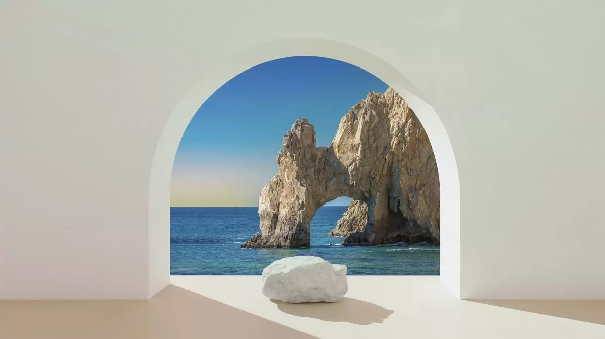 Papel de pared vista del mar y la roca a través del arco Nr. w04286