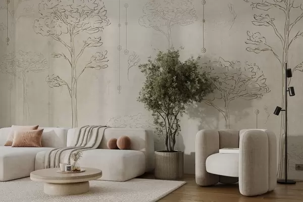 Papel de pared Siluetas lineales de árboles en estilo minimalista Nr. w04403
