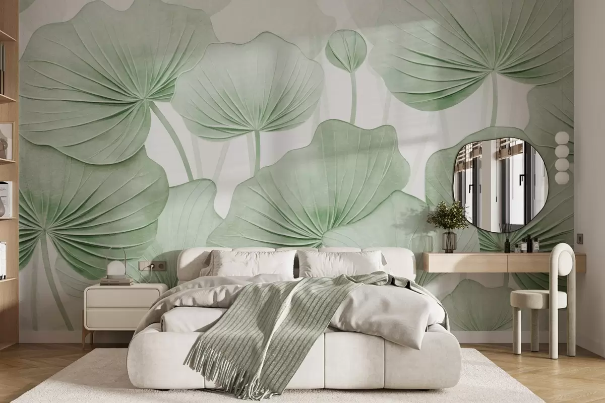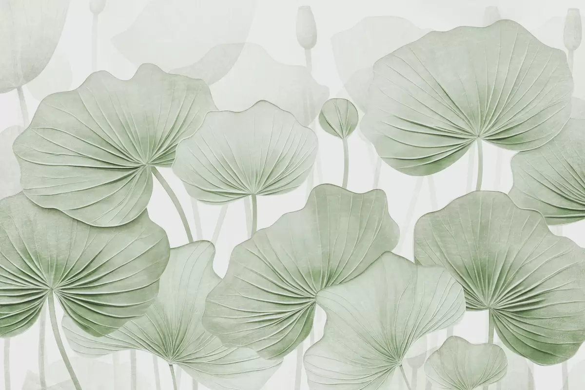 Papel de pared Hojas de loto con imitación de textura envejecida Nr. w04412