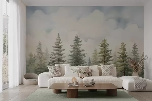murales Pintura imitación bosque de coníferas w04414
