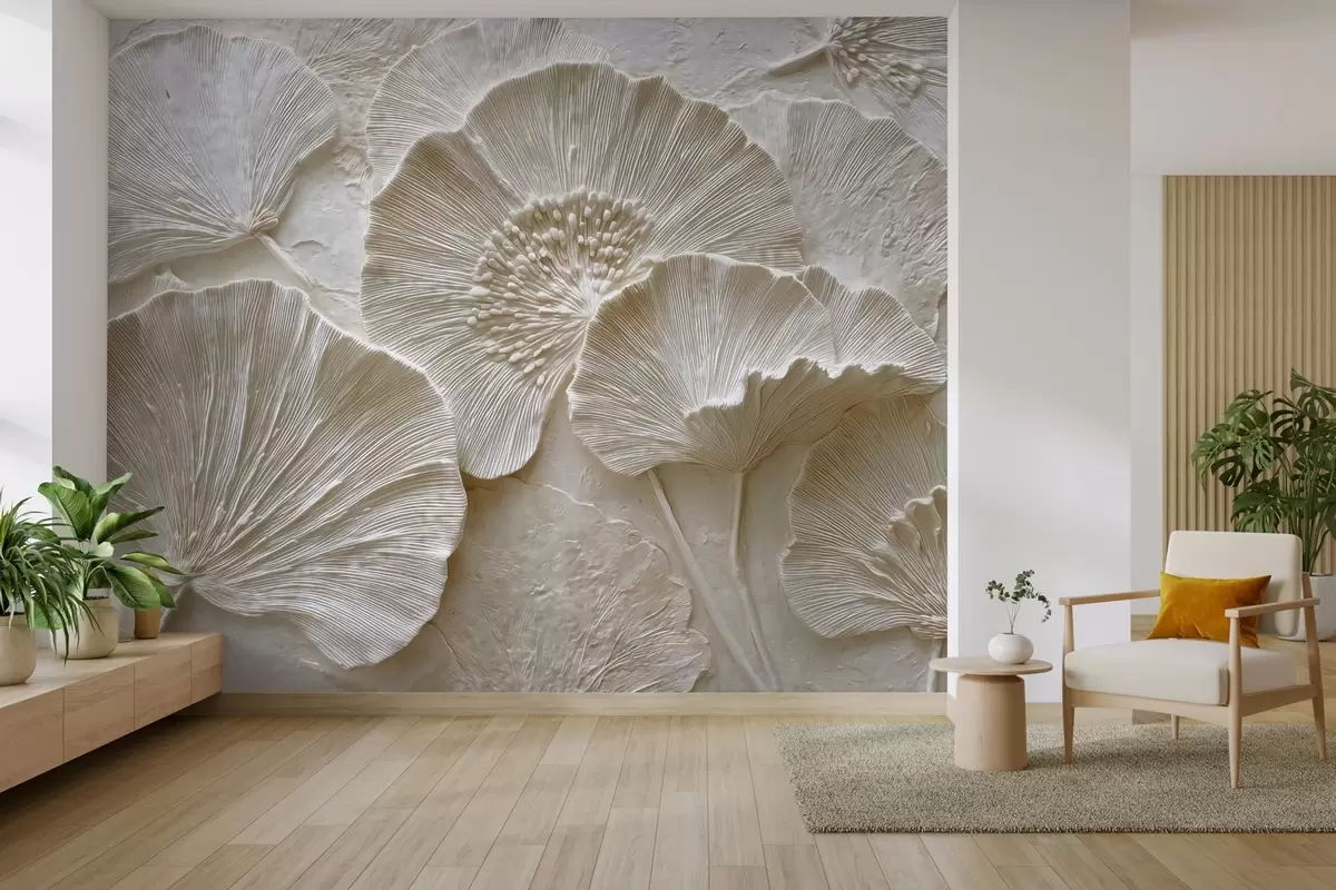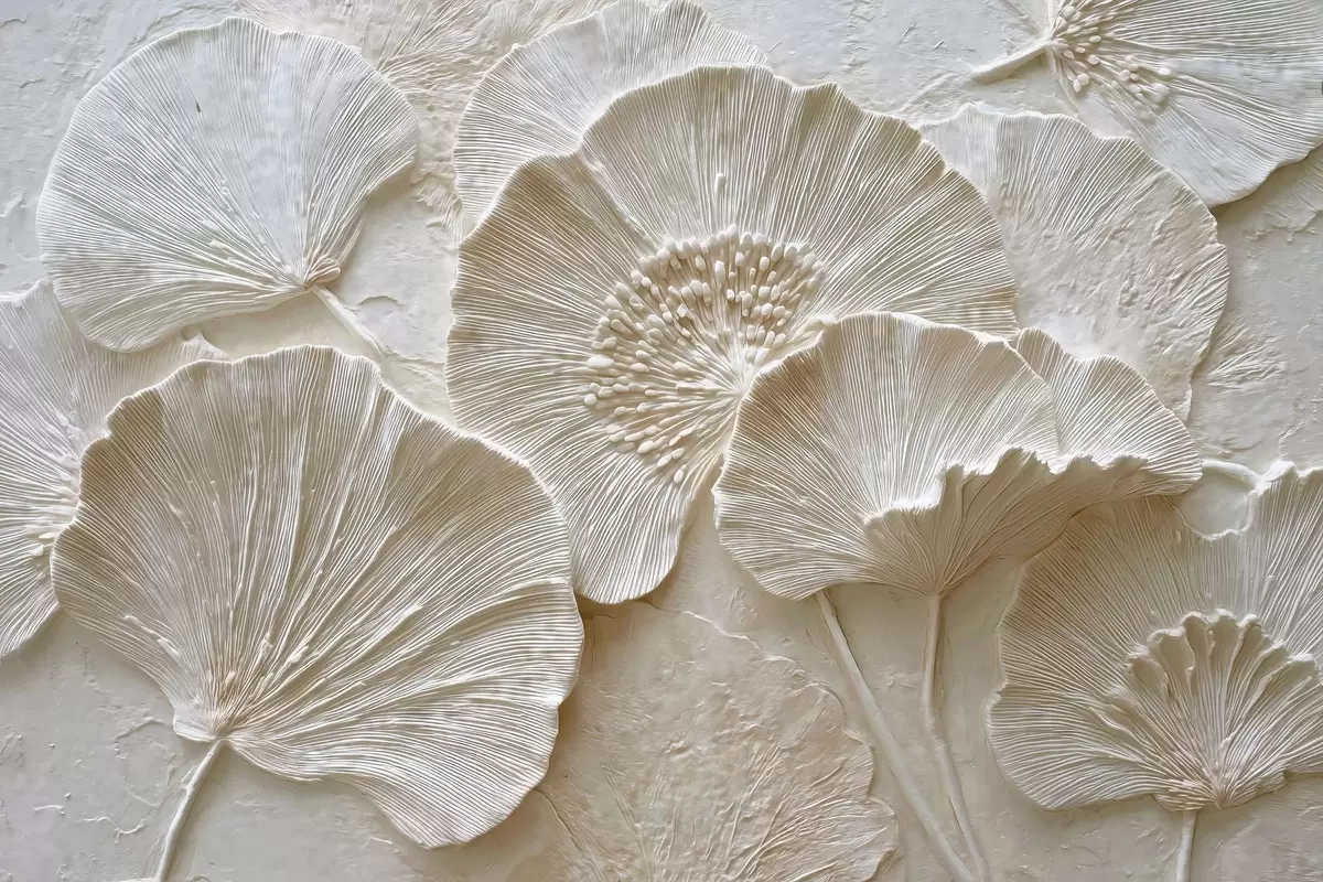 Papel de pared Voluminosas hojas de ginkgo en ligero relieve Nr. w04444