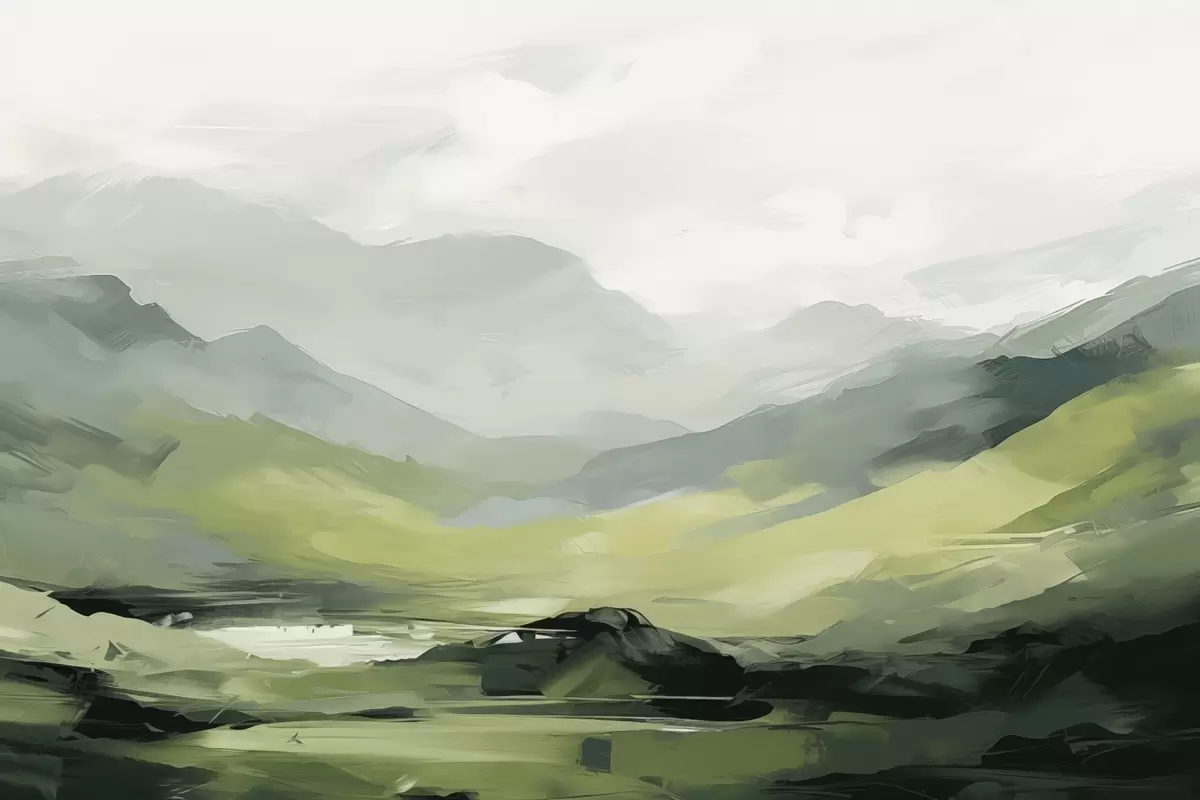 Papel de pared Paisaje montañoso abstracto en tonos verdes Nr. w04447