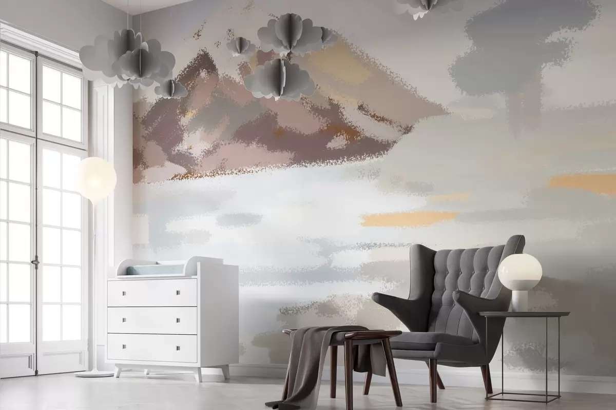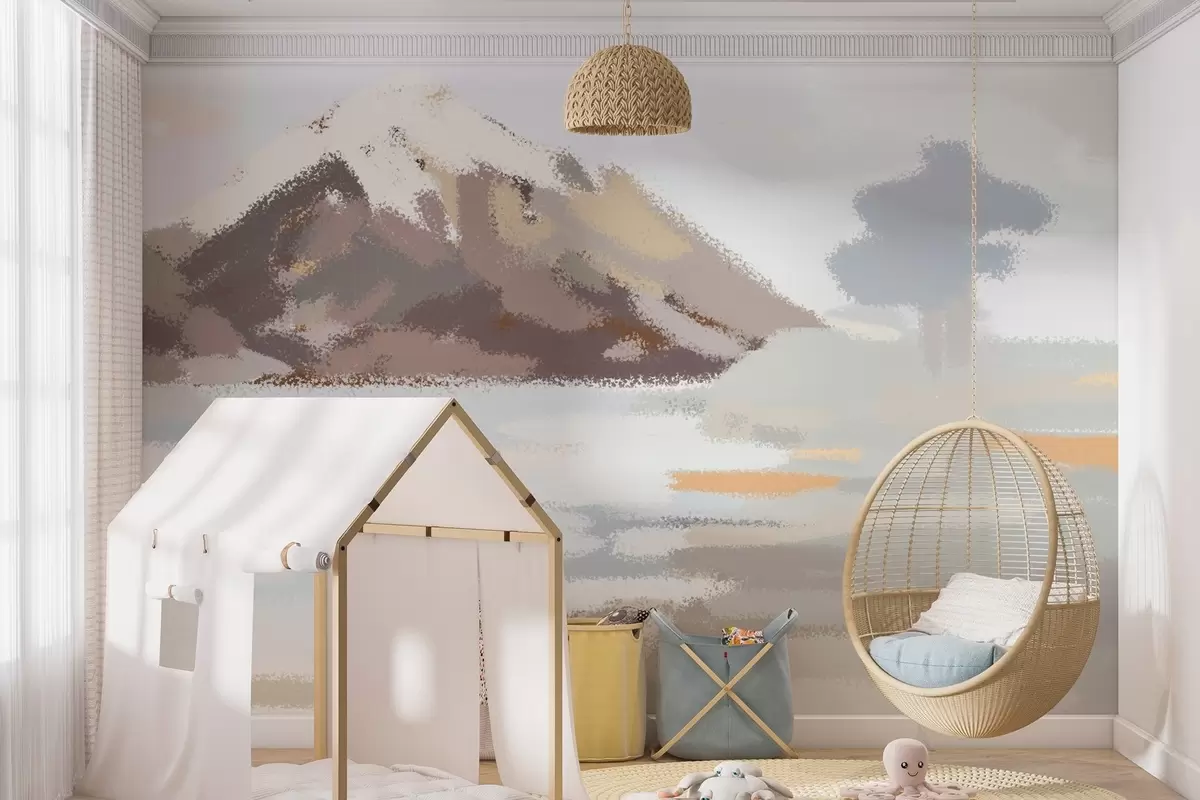 Papel de pared paisaje abstracto al estilo de un dibujo infantil Nr. w04498