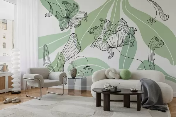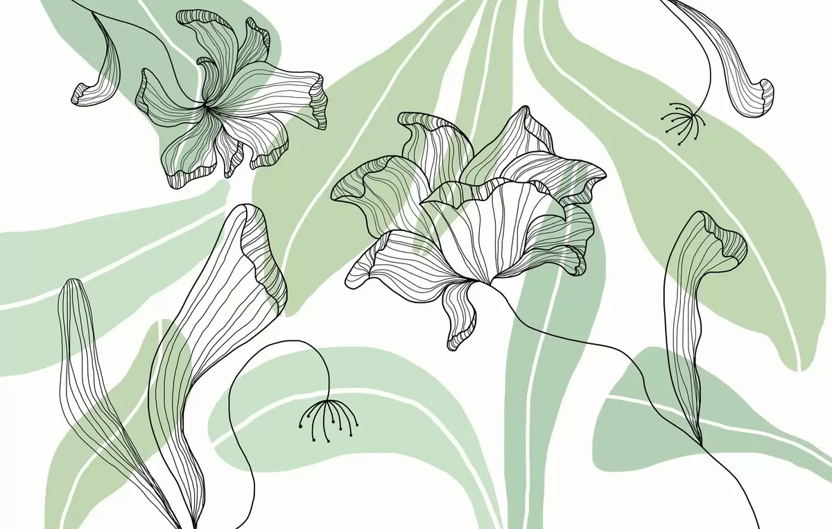 Papel de pared hojas y flores abstractas en tonos verdes Nr. w04499v1