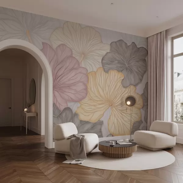 Papel de pared Hojas grandes de color pastel con nervaduras finas Nr. w04612