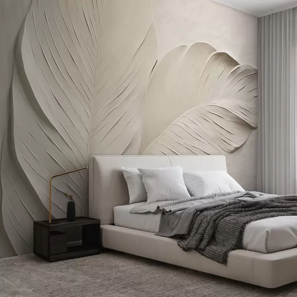 Papel de pared Hojas beige en relieve con sombras suaves Nr. w04614