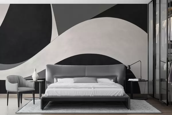 Papel de pared Abstracción en negro y gris con una suave onda Nr. w04615