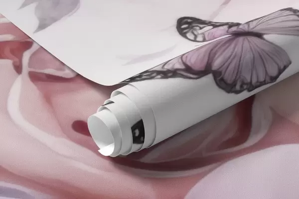 Papel de pared Delicadas flores rosas y lilas con una mariposa Nr. w04711