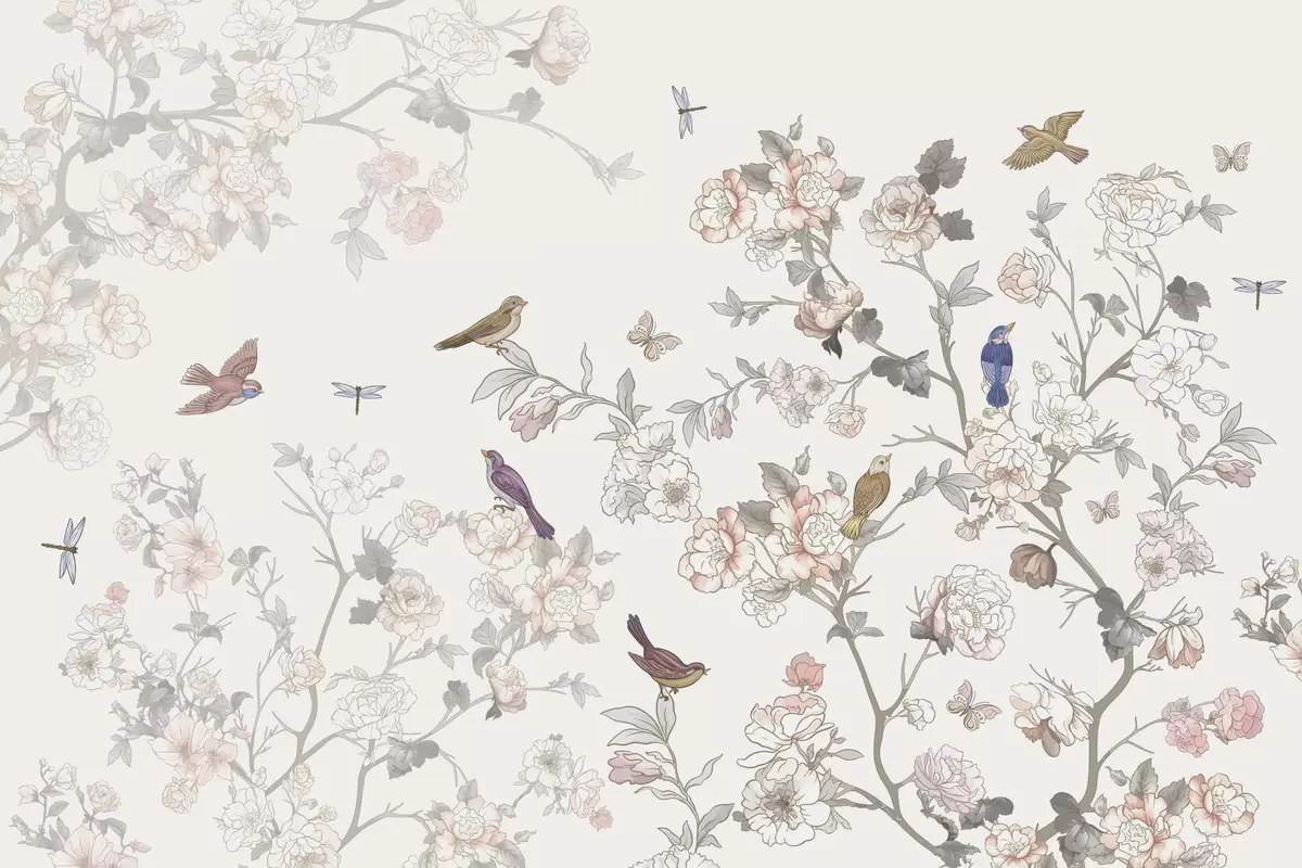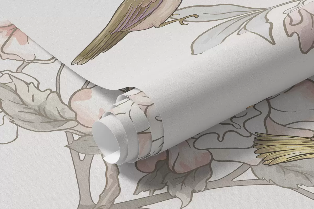 Papel de pared Pájaros cerca de ramas con flores Nr. w04939